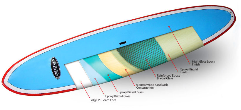 All Core series boards have reinforced edges, nose, tail and stance area.