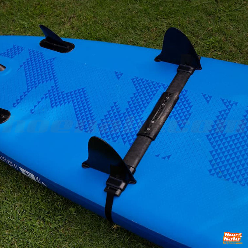 To solve this issue we are proud to introduce the Drift Stopper. It can be attached to any inflatable SUP board within seconds via a webbing strap. Yet since the fins can be snapped off it is small enough to fit into your iRIG bag. Patent pending!