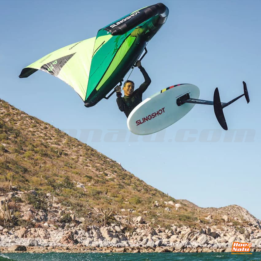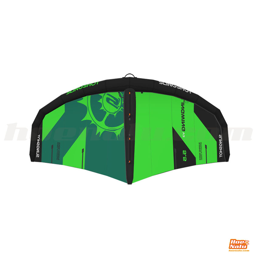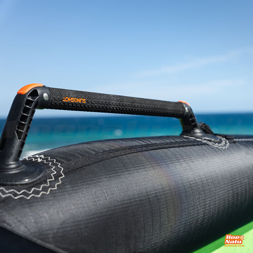 The SlingWing V3 with Slingshot rigid handles offers a greater power range in each size. The ability to use a smaller wing with the same range as a larger-sized wing provides increased power and speed with enhanced control, less weight, and reduced drag.