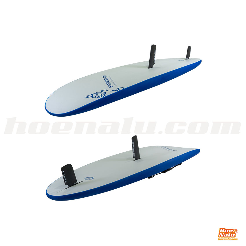 This board has a centre fin box that allows you to fit a large US Box fin, like the Drake Shallow, in the middle of the board. This centre fin helps prevent drifting downwind when windsurfing and wing-boarding. It gives you the traction you need to glide forwards when powered.