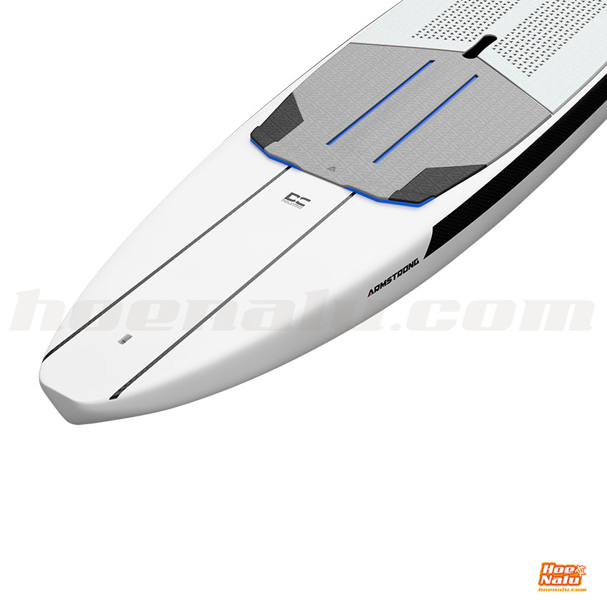 En términos de construcción, la Mk III destaca por su ligereza y resistencia, con una capa de PVC protectora, rieles de foil de carbono integrados y un sistema de doble stringer de carbono que garantiza máxima rigidez y durabilidad. La tecnología Forward Geometry, introducida por Armstrong en 2021, posiciona el foil más al centro para mejorar la respuesta y reducir el peso oscilante, asegurando un rendimiento conectado y versátil compatible con cualquier marca de foil, lo que hace de esta tabla una opción ideal para quienes buscan avanzar en DW sin comprometer el control ni la estabilidad.