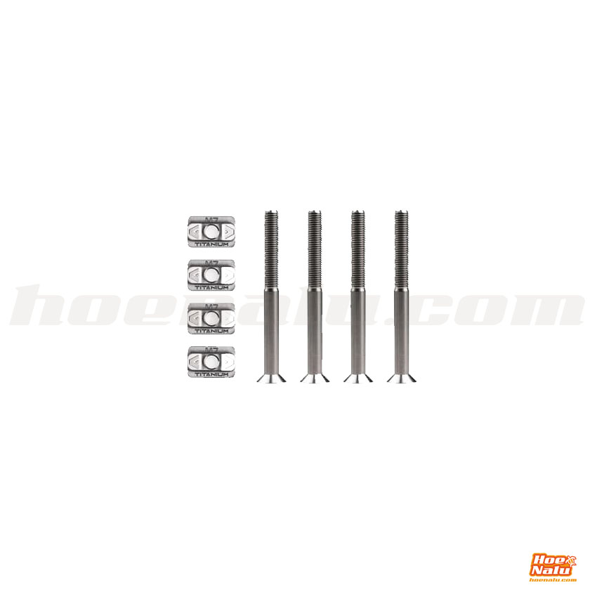 Incluye: 4x Tornillos Torx M7 de titanio avellanados de 79 mm y 4x Tuercas en T M7 de titanio.