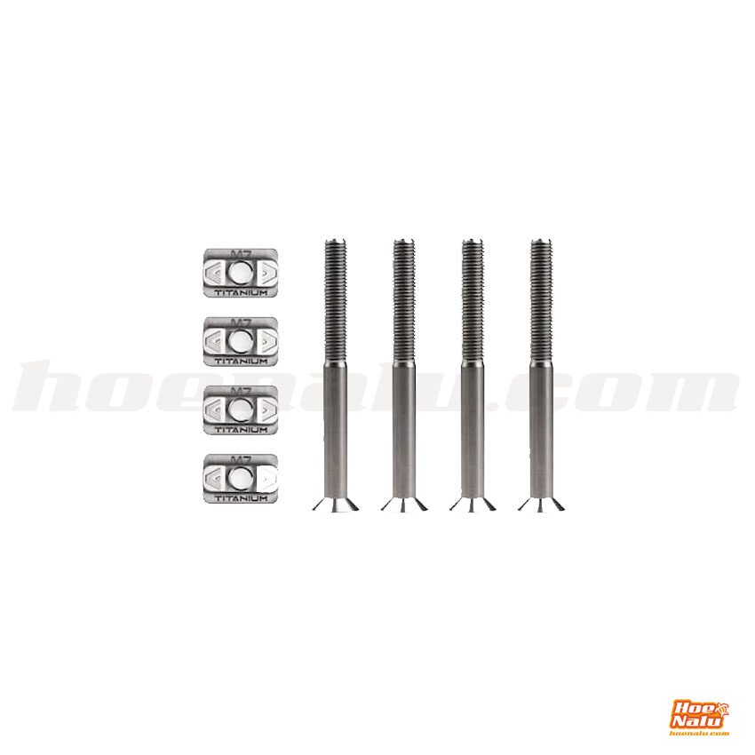 Incluye: 4x Tornillos Torx M7 de titanio avellanados de 67 o 79 mm según elijas y 4x Tuercas en T M7 de titanio.