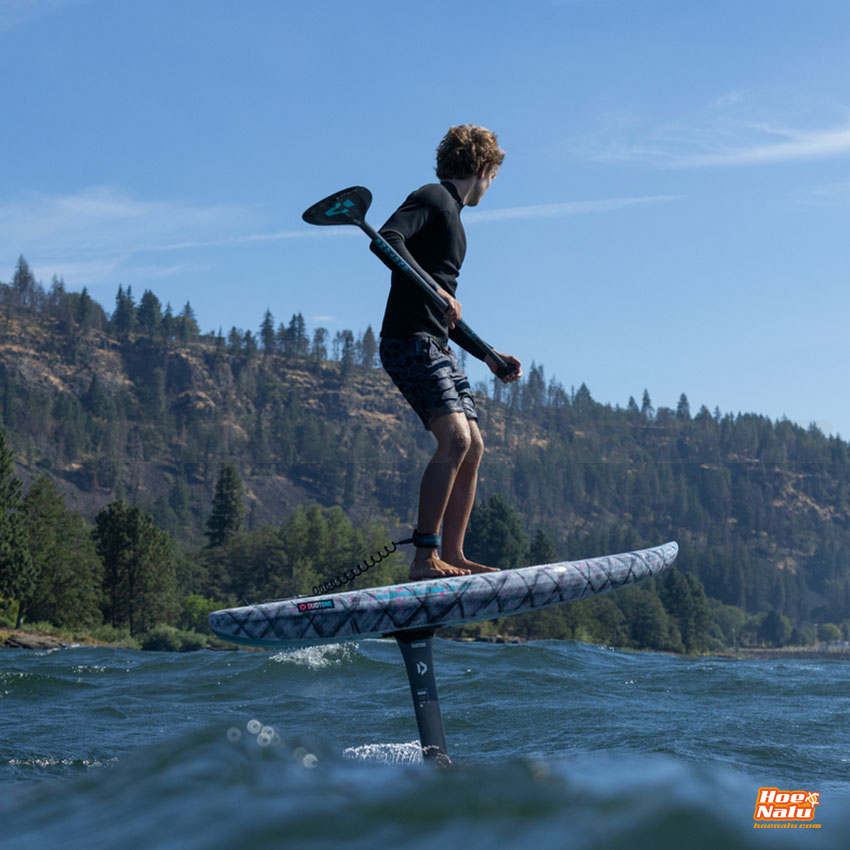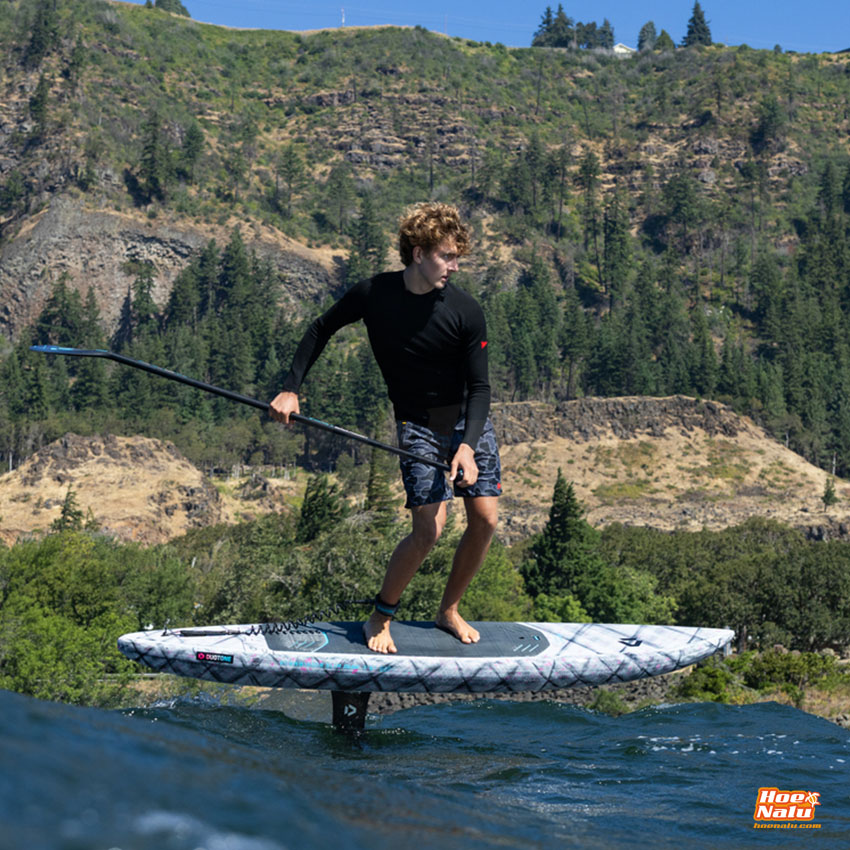 Gracias a la construcción Hollow Shell, la tabla es casi un 30% más ligera que los modelos SLS —aproximadamente 1,6 kg menos—, lo que resulta en una aceleración más rápida y una mayor velocidad al remar, transformando por completo tu experiencia en downwind foiling.