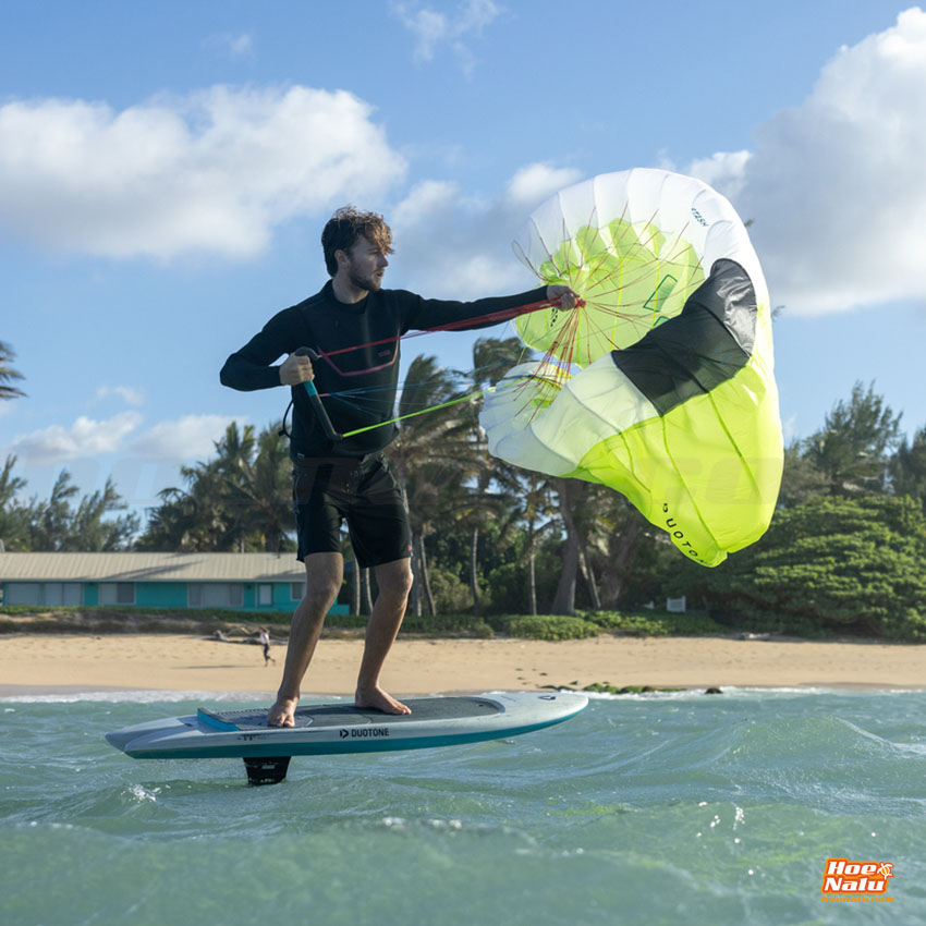 Duotone ha segmentado y estabilizado el borde de ataque del parawing a un nuevo nivel, y ha afinado el grosor del perfil y el ángulo de ataque para lograr una excelente combinación de baja resistencia aerodinámica, depower y vuelo estable, ampliando el rango de viento y ofreciendo un control excepcional ante velocidades de viento variables y diferentes ángulos de navegación.
