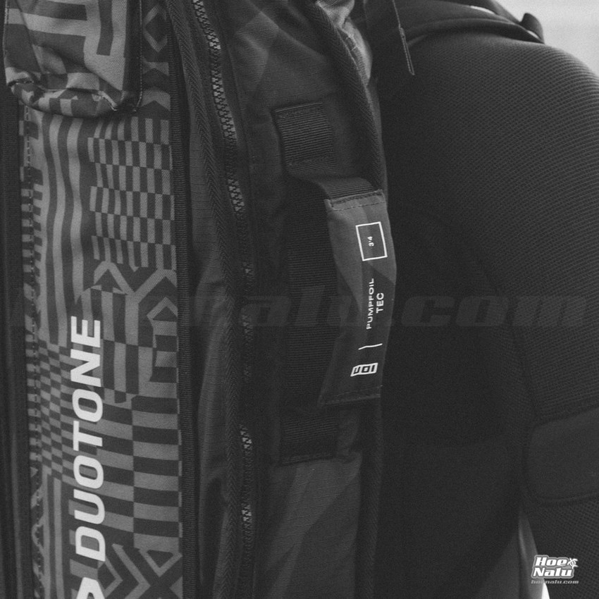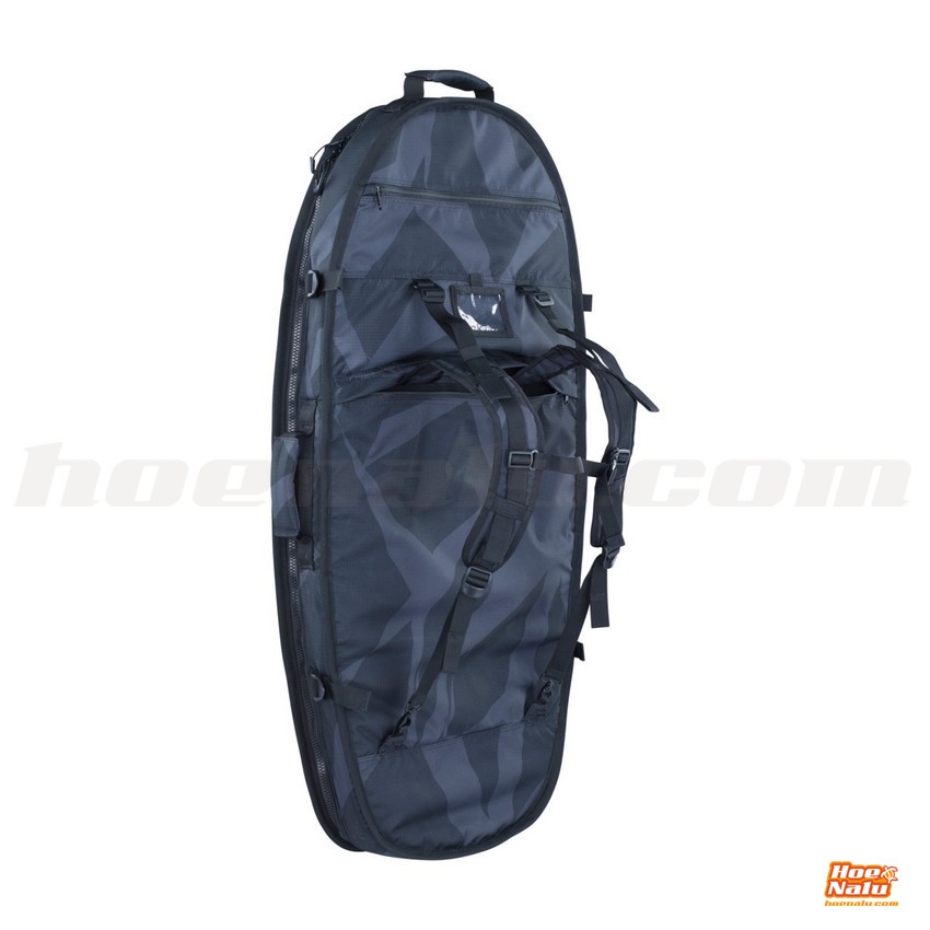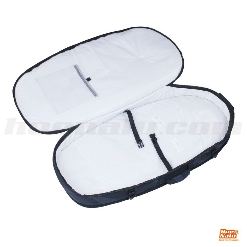 - Sistema de organización para foil: Diseñada con un sistema externo de clasificación para foil, la funda incorpora ranuras dedicadas y correas ajustables para organizar de forma segura el mástil, el fuselaje y las alas, convirtiéndola en una solución completa e integrada para transportar el equipo de foil.