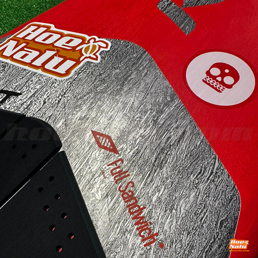 Su construcción es full sandwich con núcleo EPS ultraligero envuelto en un exoesqueleto de carbono completo de alta densidad y múltiples capas. La construcción tipo sándwich de carbono biaxial y unidireccional de alta densidad proporciona máxima rigidez y resistencia al impacto, con ventanas de fibra de vidrio integradas ajustadas a 2.4 GHz para conectividad con Foil Assist, y la disposición de núcleo completo más avanzada para resistencia, rigidez y rendimiento ligero. El peso más ligero con una estructura reforzada equivale a una mejor respuesta, sensación y durabilidad.