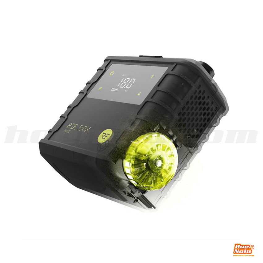 Impulsado por una batería de litio de 4500 mAh, es capaz de inflar de cuatro a seis wings, y hasta tres tablas de SUP con una sola carga.