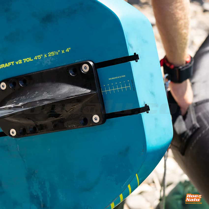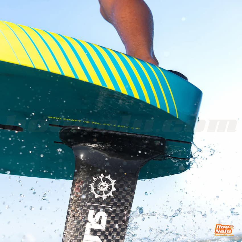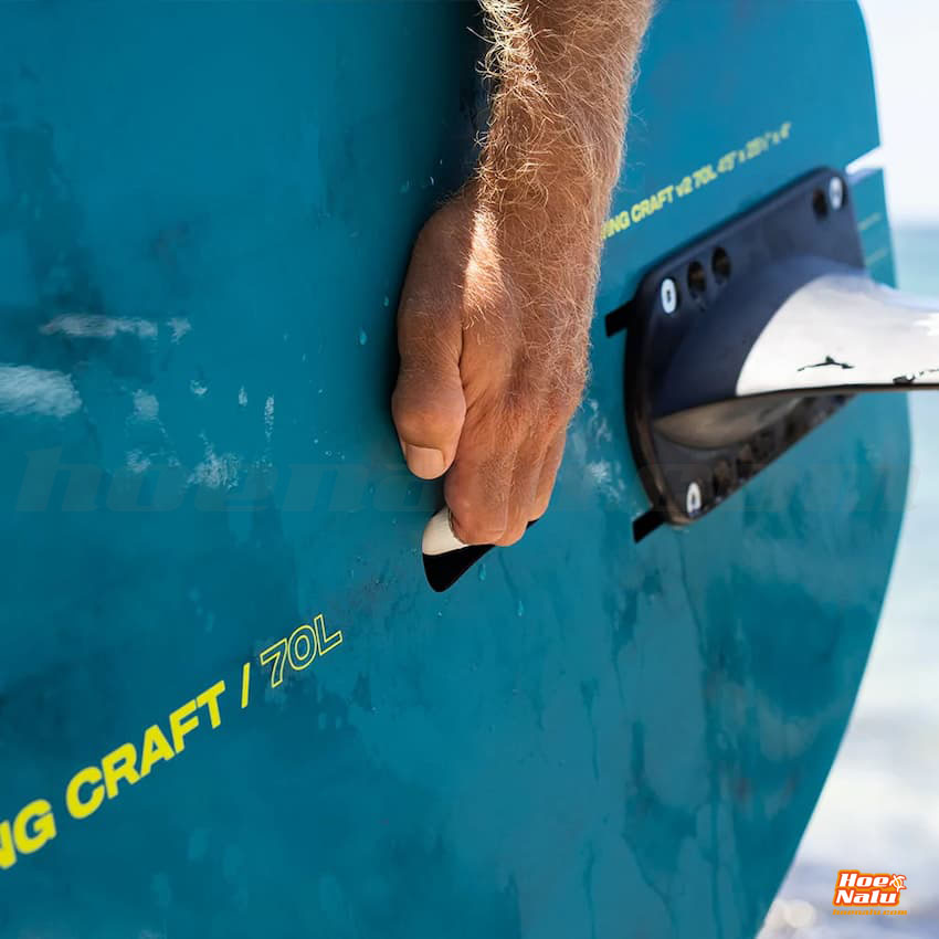 La Wing Craft V2 está disponible en ocho tamaños, y los tamaños de 80 litros o menos cuentan con los cajetines de los raíles de foil en la parte trasera para una conexión/desconexión súper rápida del foil.