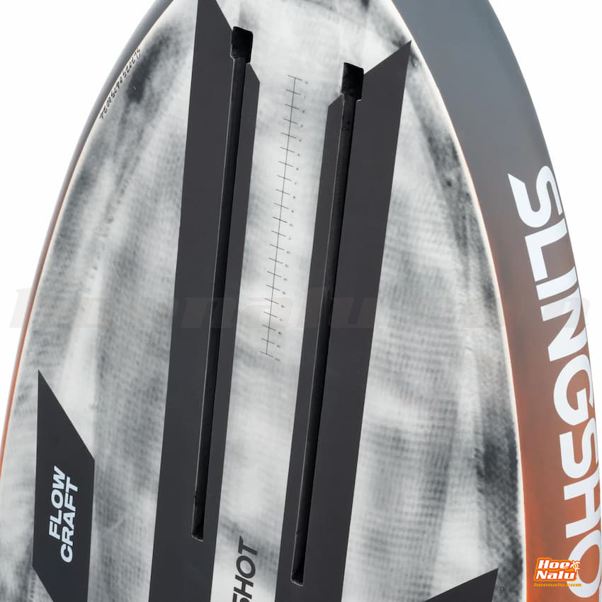 La Slingshot Flow Craft V1 es un nuevo estándar en tablas de wingfoil con una forma innovadora y una construcción ligera. Diseñada con el principal objetivo enfocado en el rendimiento, utilizando una construcción de carbono forjado en un contorno de curva comprimida.