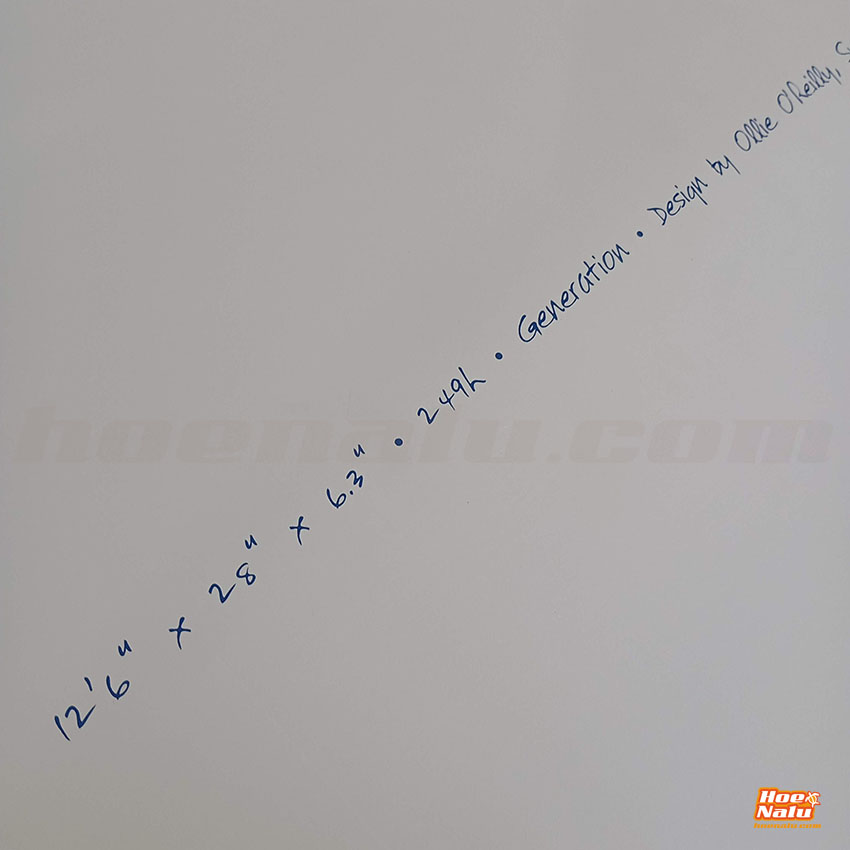 | 12'6" / 381 cm | 28" / 71.1 cm | 6.3" / 16 cm | 249 L | 13.2 kg | <100 kg | Center 8" / 2xSide: 5.5" |